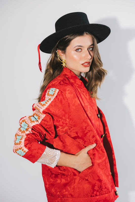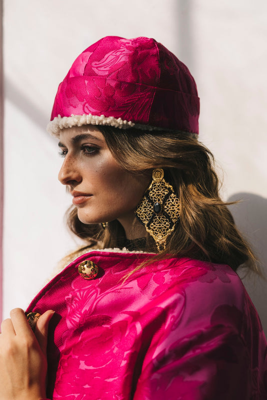 No nosso atelier desenhamos coroas, tiaras, toucados, bandoletes, brincos, pulseiras de mão e braço, pulseiras tradicionais, anéis, tops, saias, casacos... Tudo! Desenhamos e produzimos cada peça à sua medida.