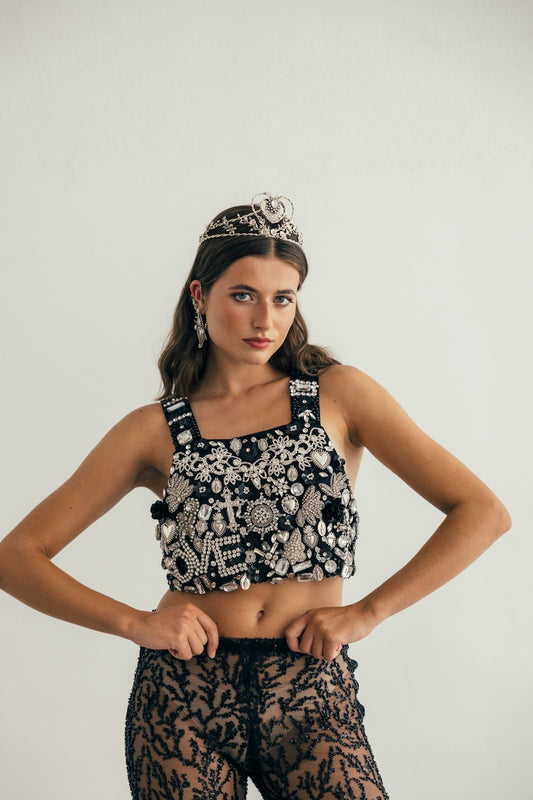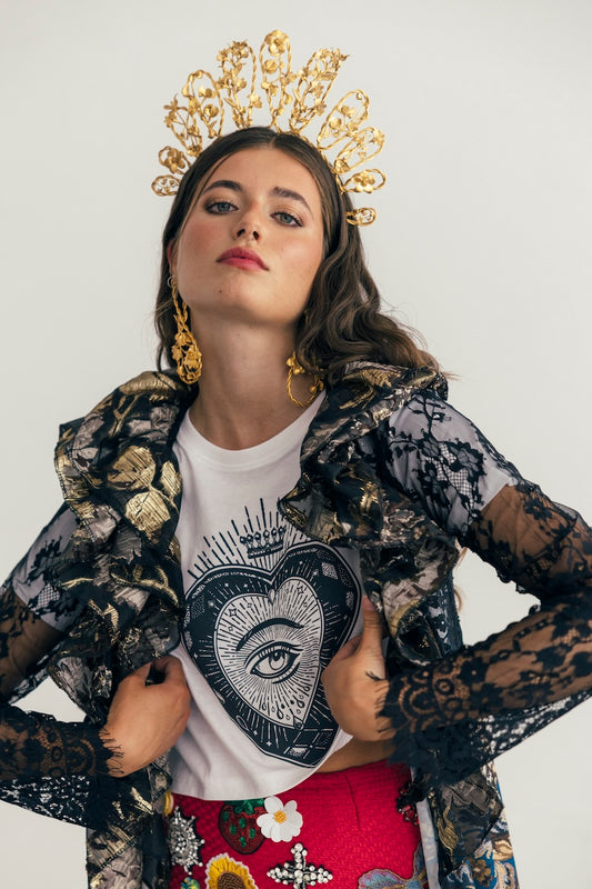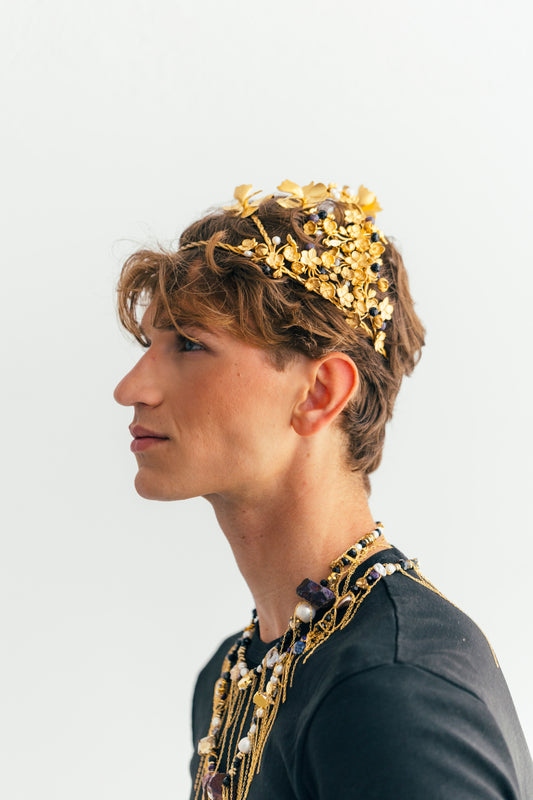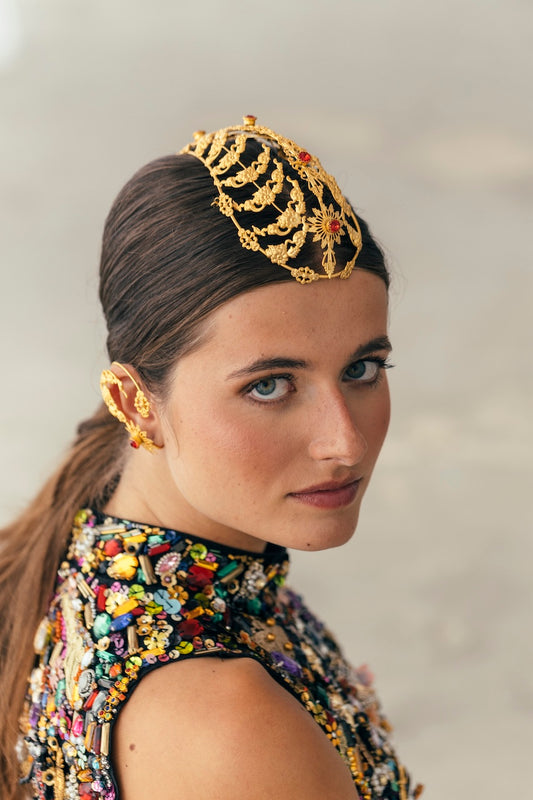 En nuestro estudio diseñamos coronas, tiaras, tocados, diademas, pendientes, pulseras para manos y brazos, pulseras tradicionales, anillos, tops, faldas, abrigos… ¡Todo! Diseñamos y producimos cada pieza según tus especificaciones.