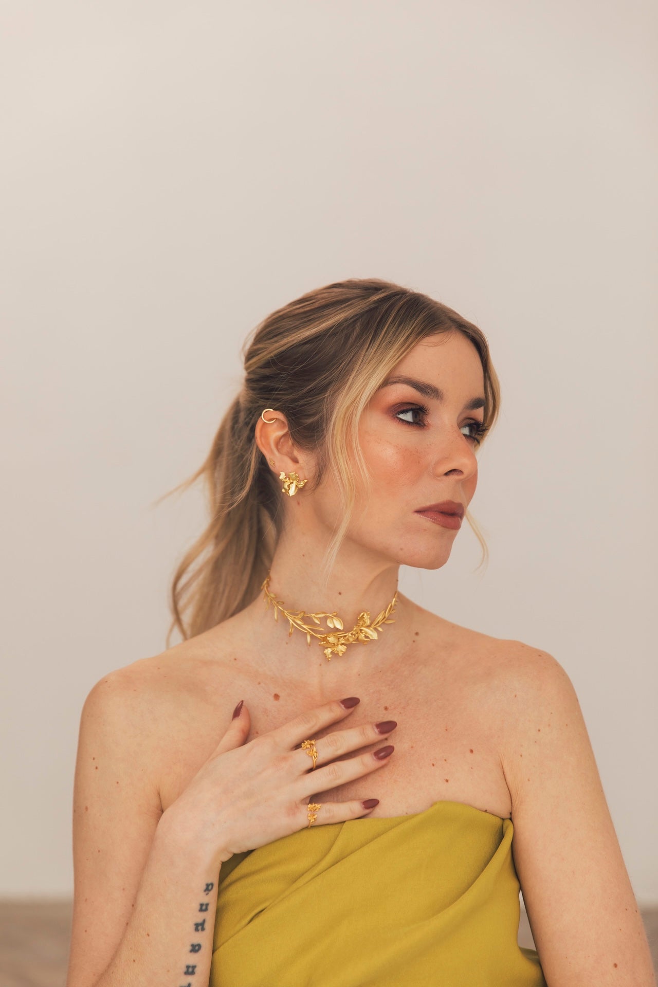 Los pendientes Lupina están fabricados en latón bañado en oro.