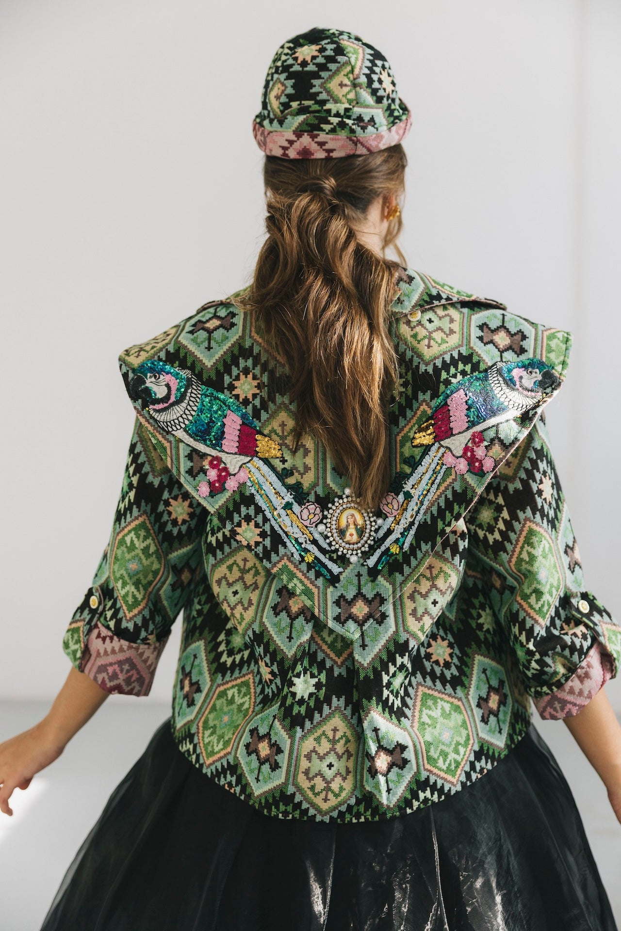 El abrigo es talla S (hombre), M oversize (mujer). Esta pieza es unisex.