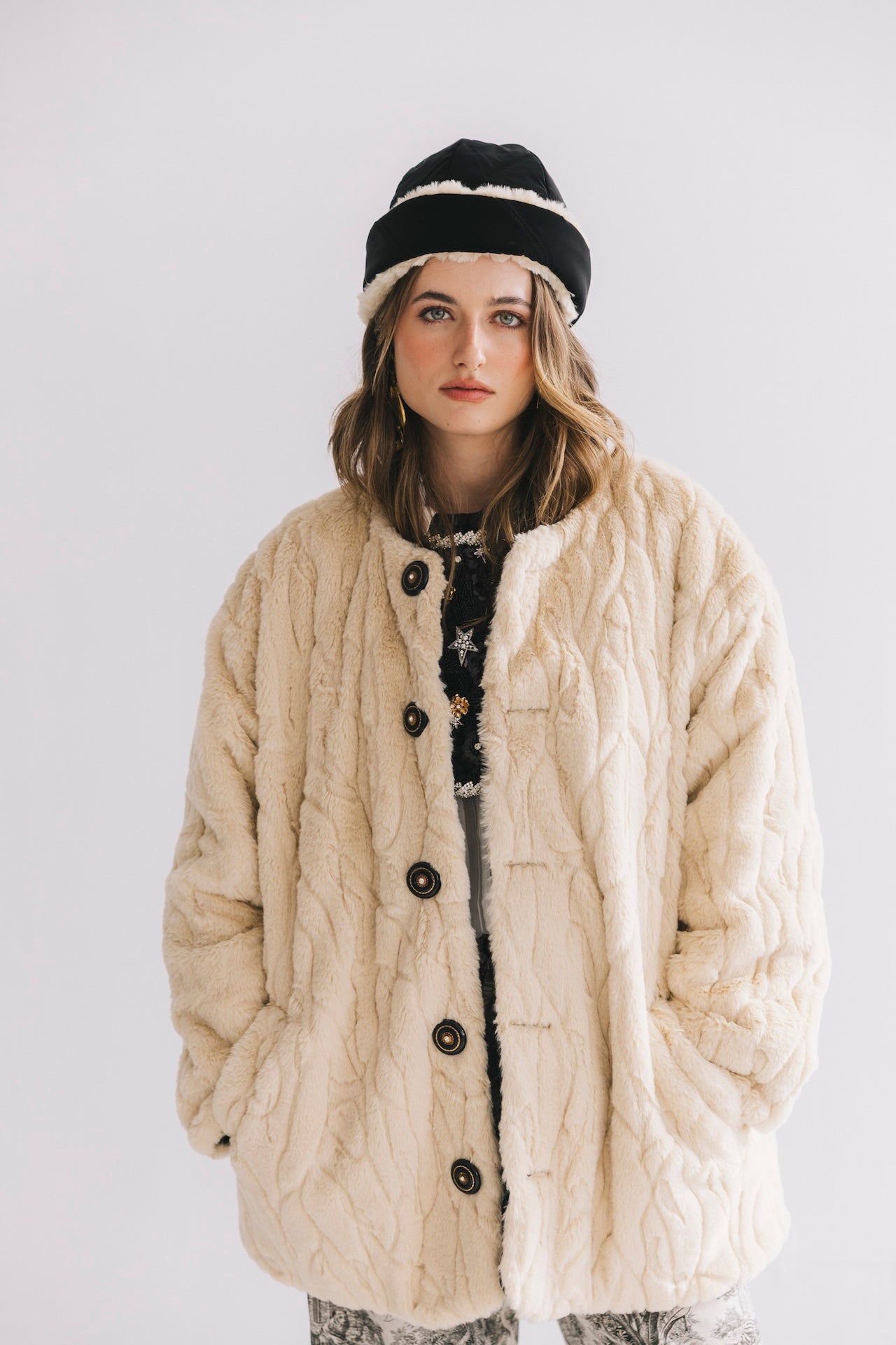 El abrigo es talla S (hombre), M oversize (mujer). Esta pieza es unisex.