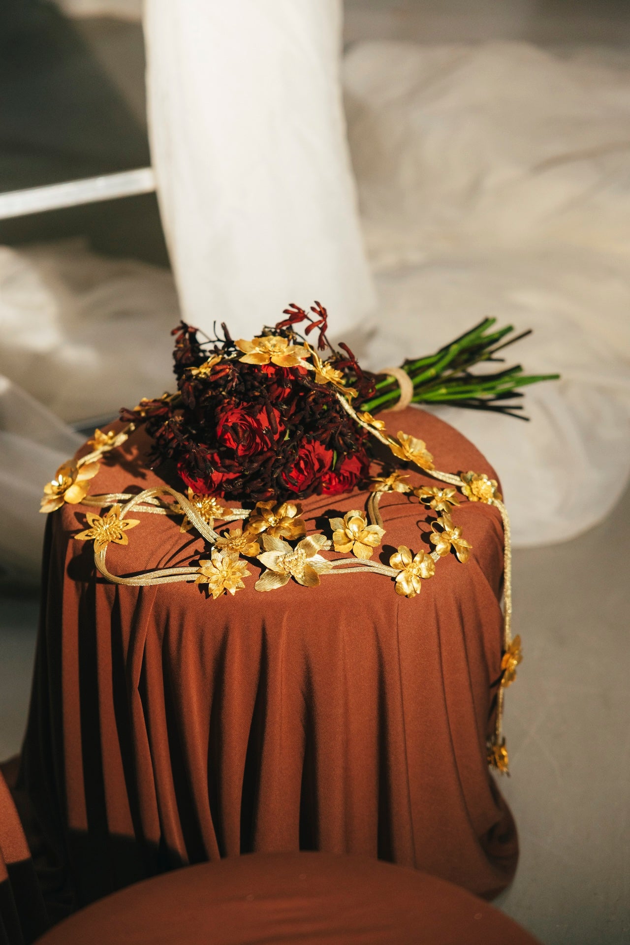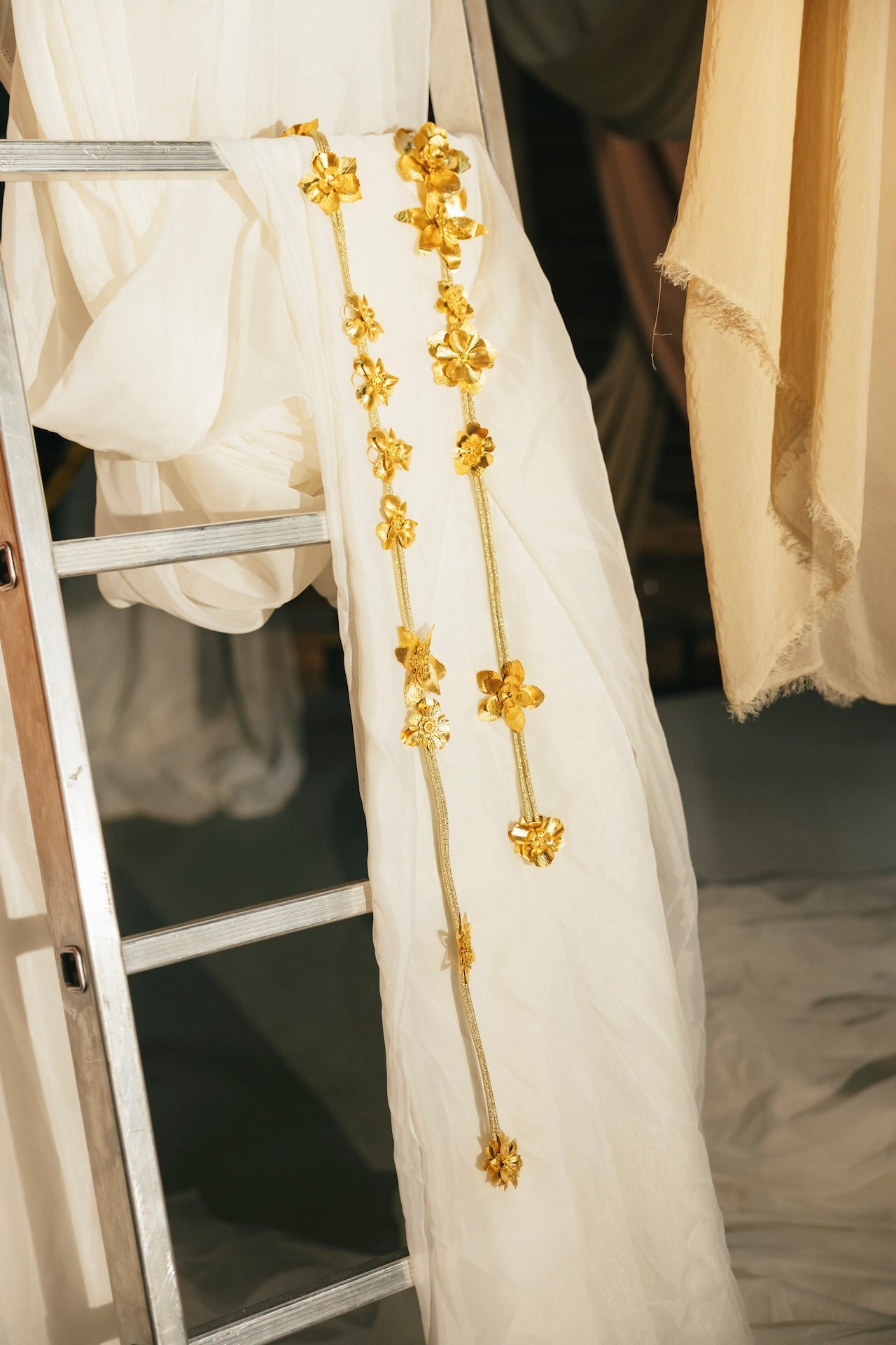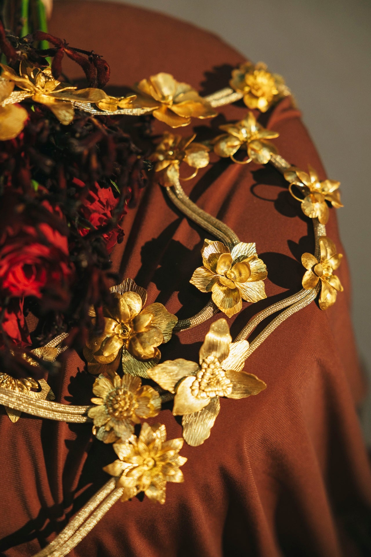 Este cinturón está hecho a medida. Está todo fabricado en latón bañado en oro.