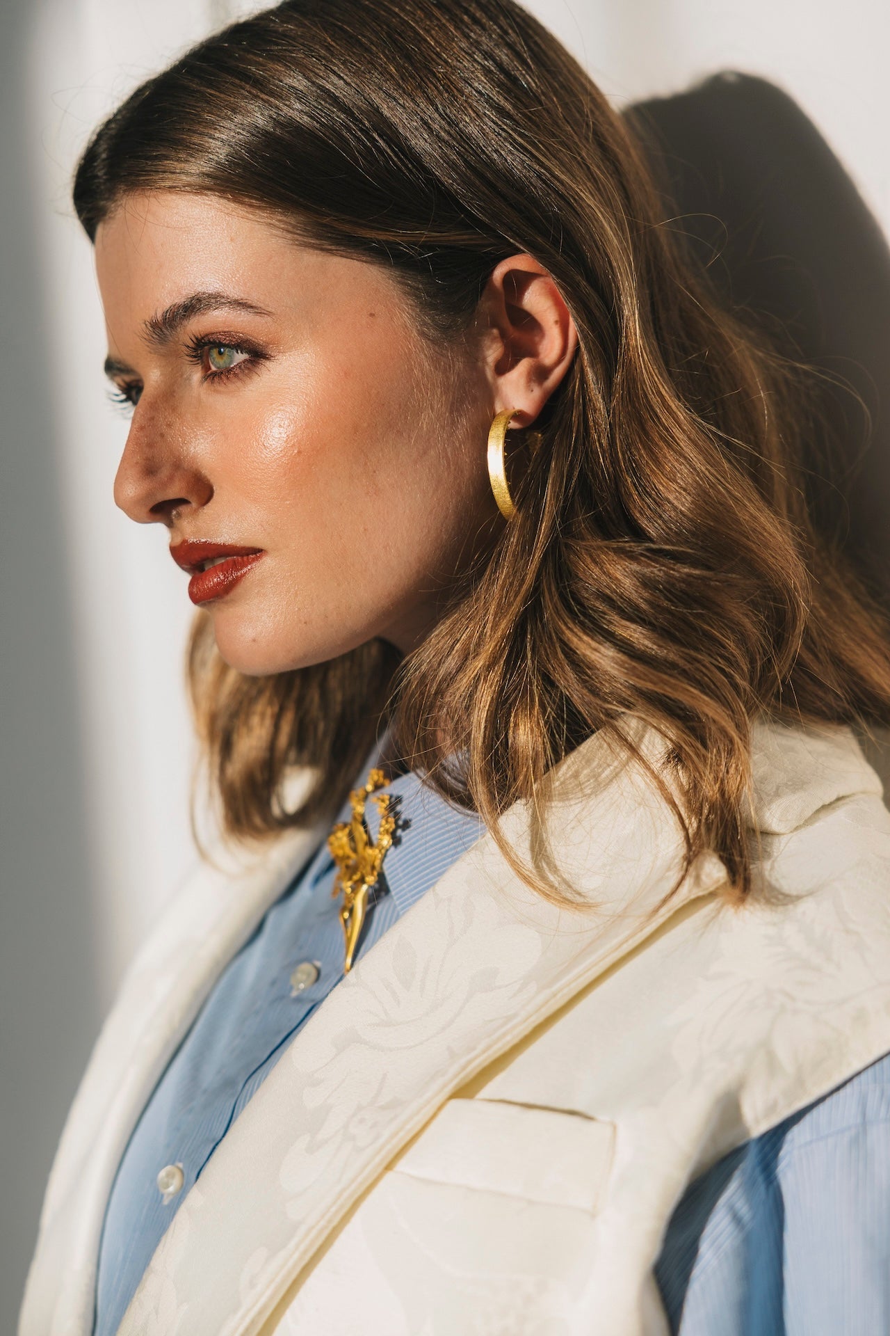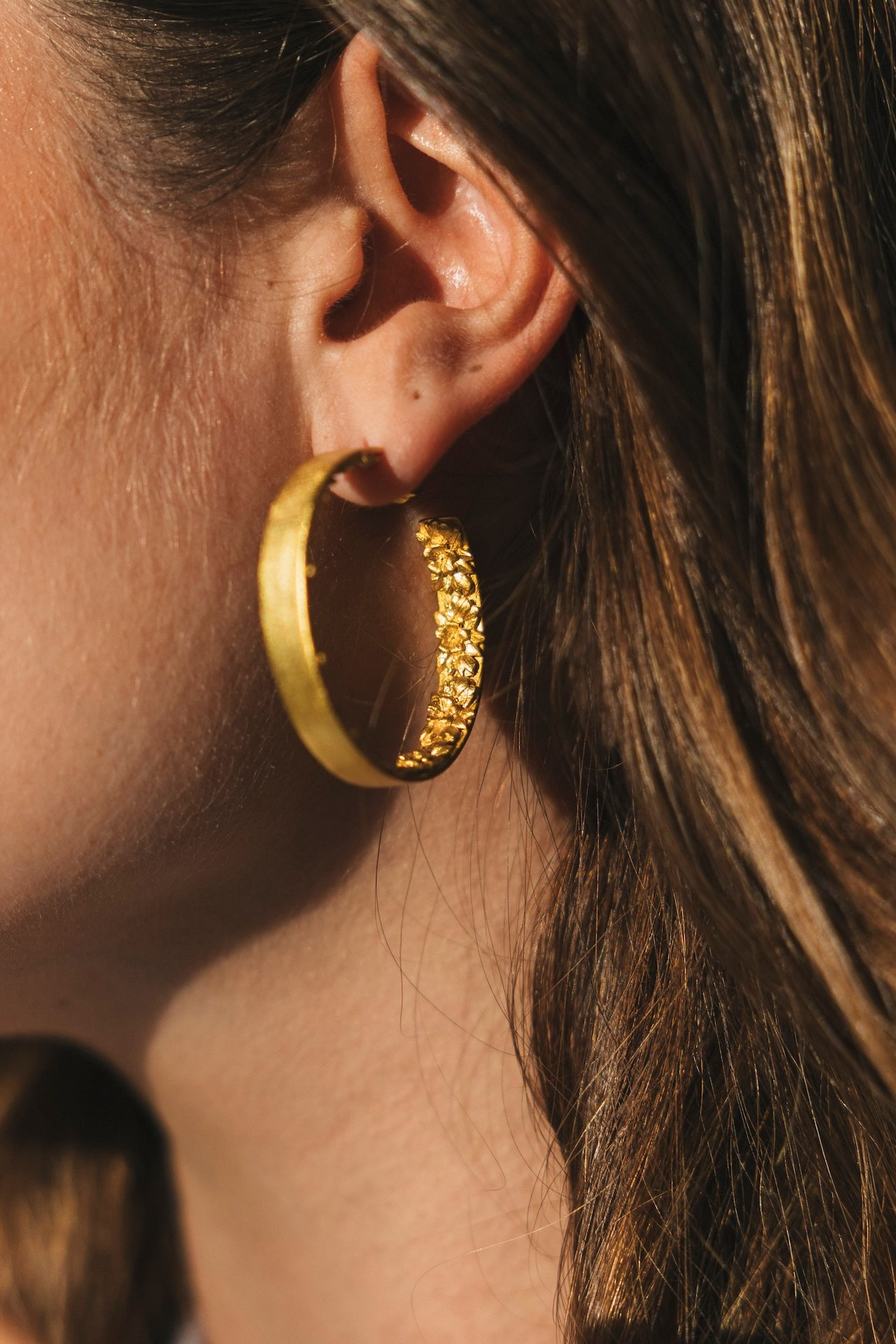 Os brincos Chara são feitos de latão, banhados a ouro e são vendidos ao par.