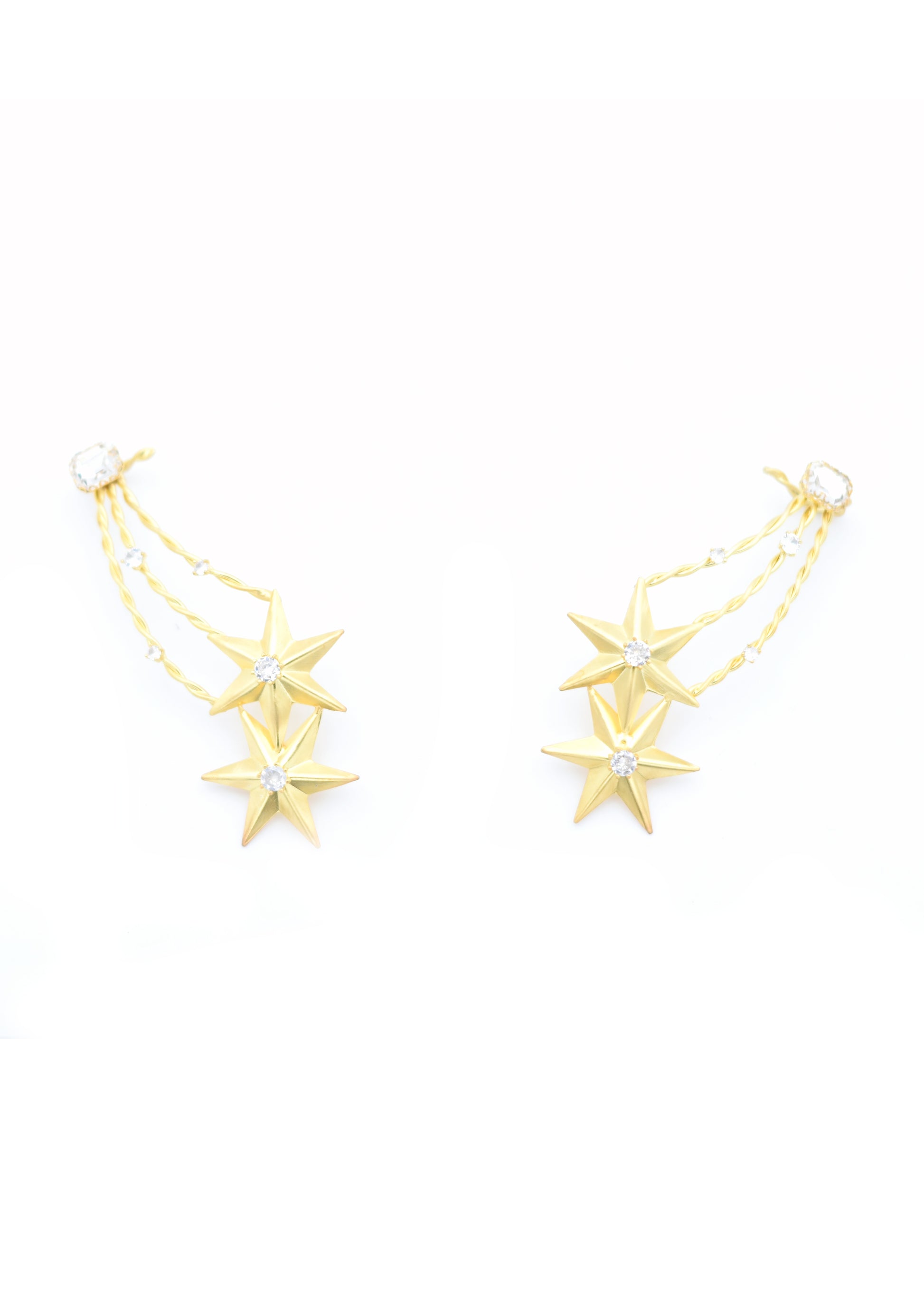 Os nossos brincos são feitos em latão, banhados a ouro e são vendidos ao par.