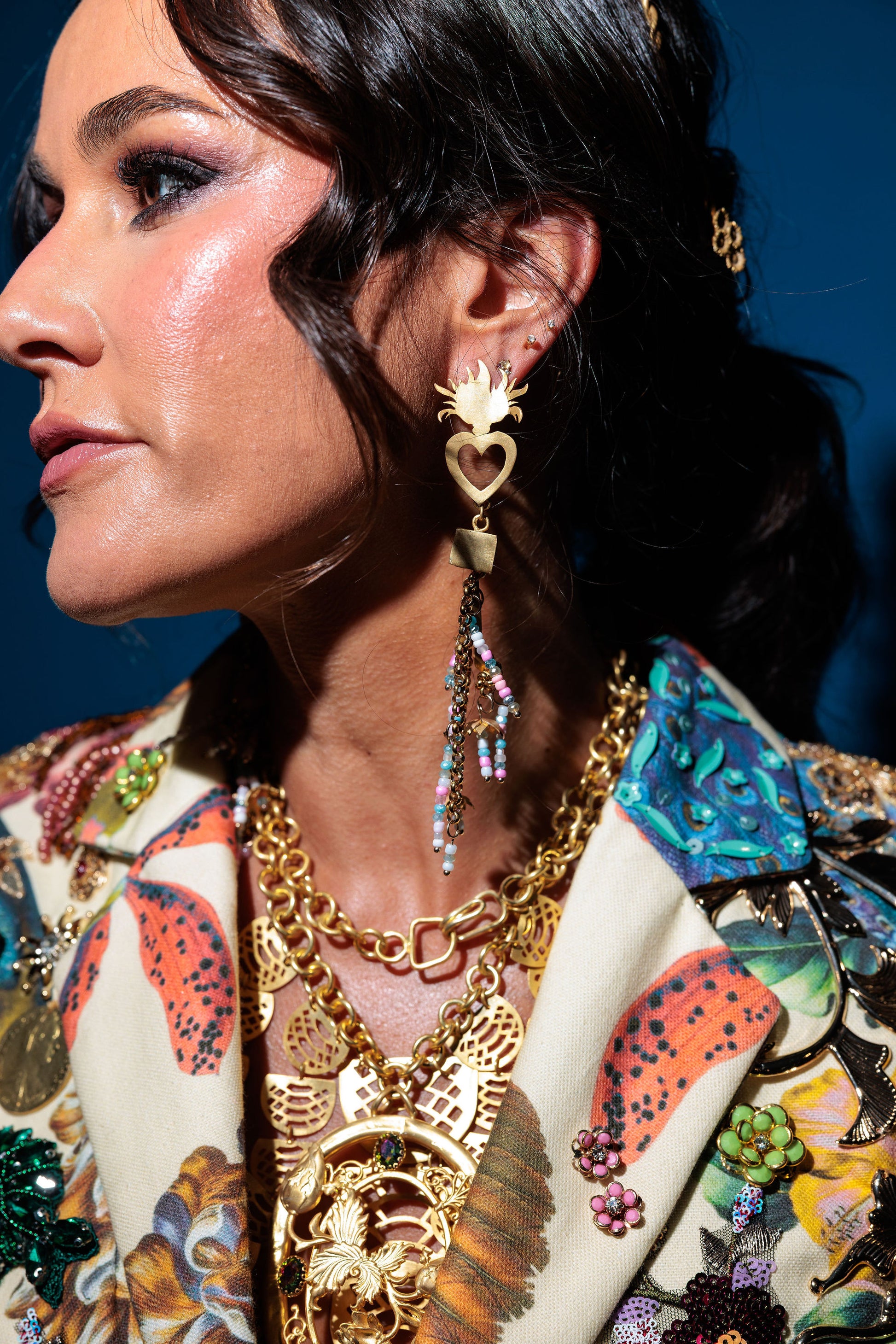 Os nossos brincos são feitos em latão, banhados a ouro e são vendidos ao par.