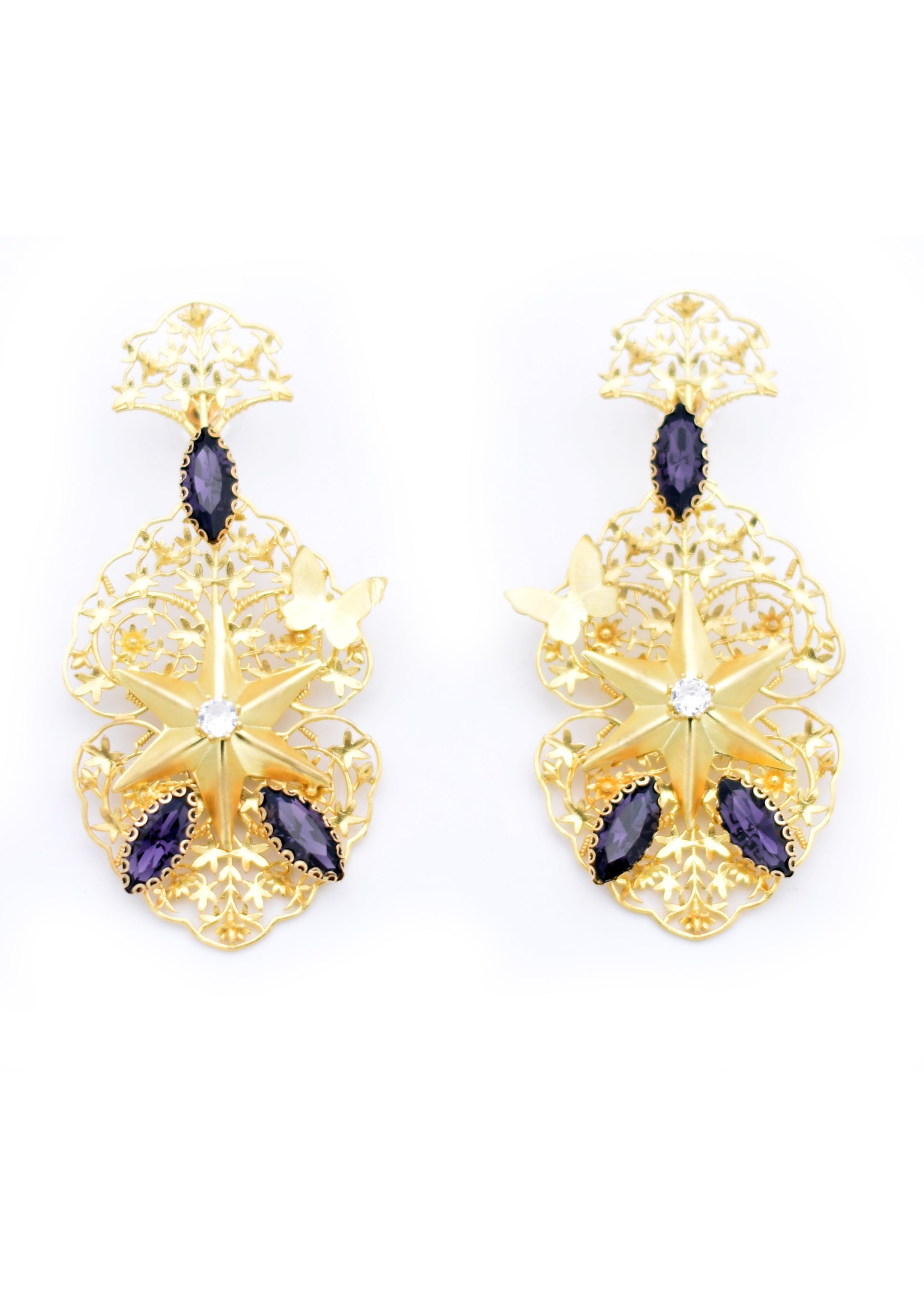 Os nossos brincos são feitos em latão, banhados a ouro e são vendidos ao par.