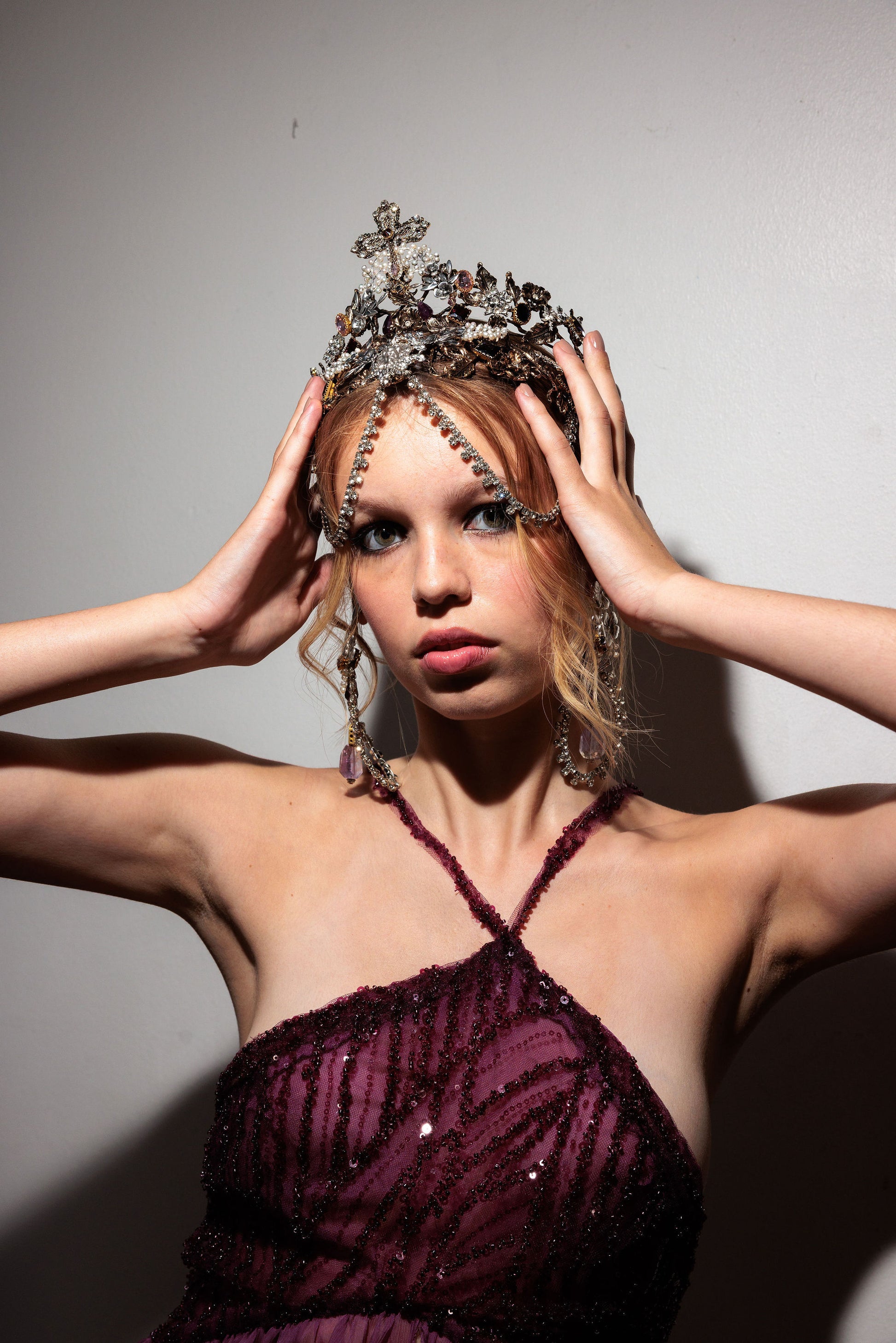 Como parte dos exclusivos Utopia são peças únicas. Aqui, o toucado, está conjugado com a Coroa Sebille.